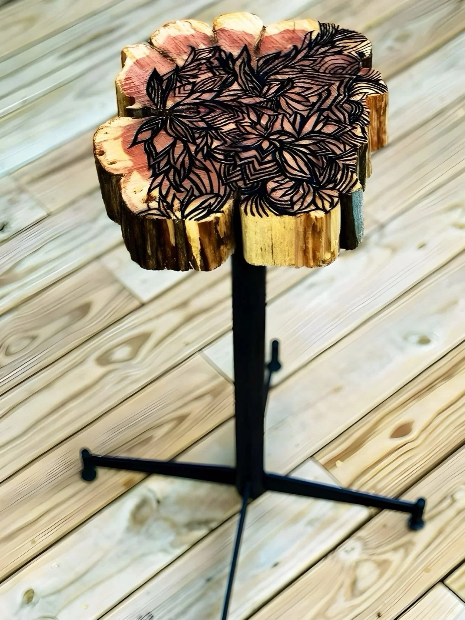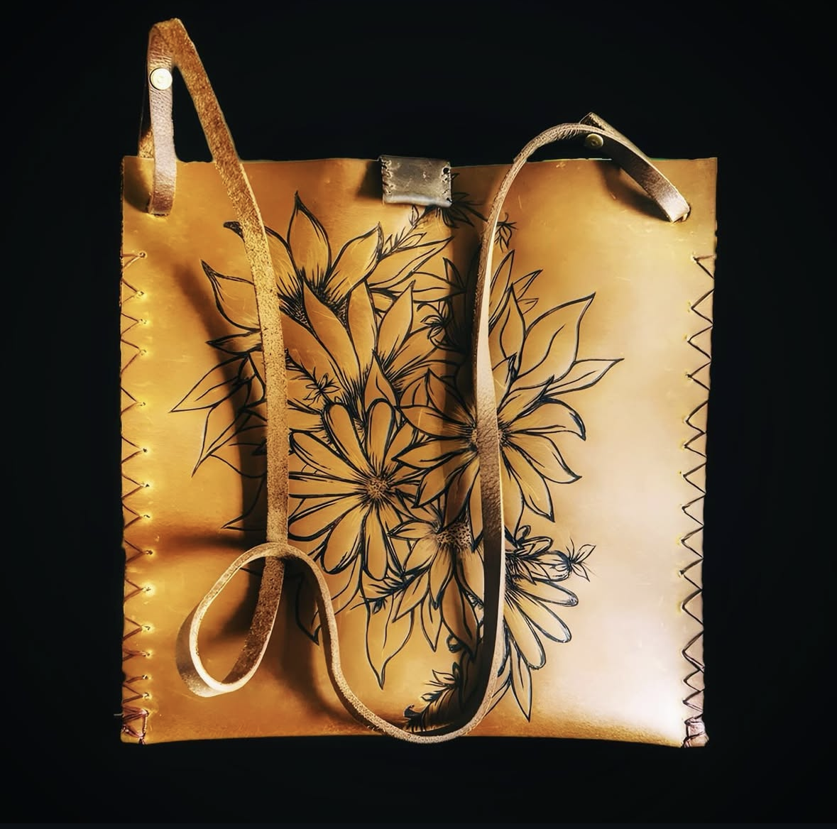 Sarah Dampier is a local artist and designer. She loves to create unique pieces such as furniture, leather, paintings, ceramics, and burn custom designs on cowboy hats. She also works in graphic design and marketing when she is not creating other pieces. Her inspiration comes from God, her husband, and her baby boy. Sarah is also inspired by anything and everything related to nature and animals. Sarah says, “I am so grateful for my passion to create and how it grows more and more every day.”